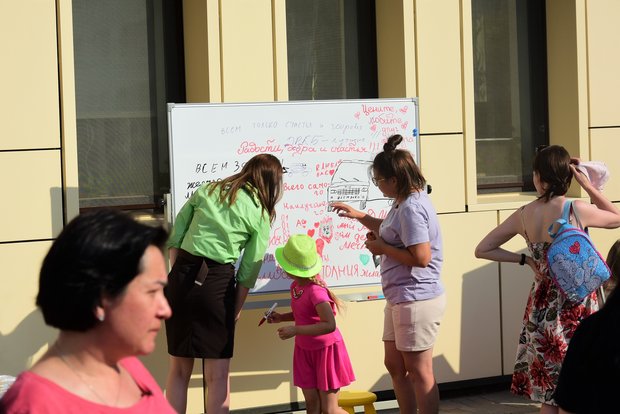 Символом праздника стали «Сердца» и «Детские ладошки», на которых гости могли оставить свои поздравления и пожелания.