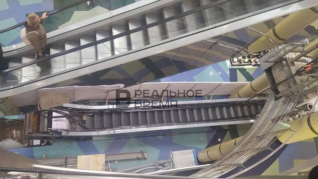 В казанском торговом центре «Кольцо» меняют эскалатор на нулевом этаже, сообщил корреспондент «Реального времени».