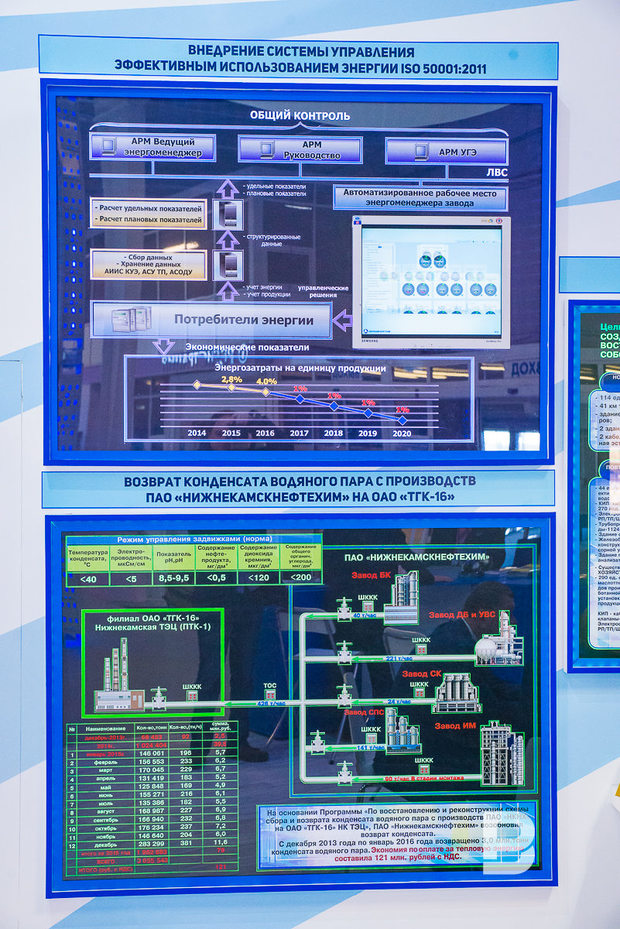 В этом году на своем стенде компания представила новые достижения в сфере сохранения и сокращения потребления электричества и тепла. Правительственная делегация во главе с президентом РТ Рустамом Миннихановым посетила стенды участников энергетического форума. У стенда НКНХ о результатах работы компании в области энергосбережения рассказал главный энергетик НКНХ Александр Вдовин.