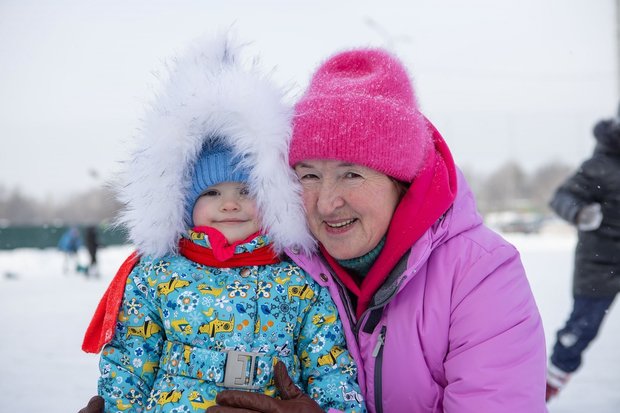 Еще одним местом притяжения горожан в Парке нефтехимиков стал каток. Маленькая Диана свои первые робкие шаги по блестящей глади льда делает, держась за бабушкину ручку. Девочке всего два с половиной года, вставать на коньки пока рановато, а для топота в сапожках лед — в самый раз.