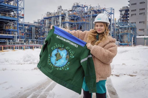 После экоурока звездная гостья посетила «Казаньоргсинтез», где ей в качестве подарка вручили кастомизированную казанскими дизайнерами спецовку. Кастомизация является примером апсайклинга и позволяет дать новую жизнь старым вещам. На КОСе программа стартовала в связи с выведением из обращения старой спецодежды и заменой ее на более современную. Так предприятие демонстрирует экологический подход и увековечивает спецовки в истории. Один из таких экземпляров в подарок получил и раис Республики Татарстан Рустам Минниханов.