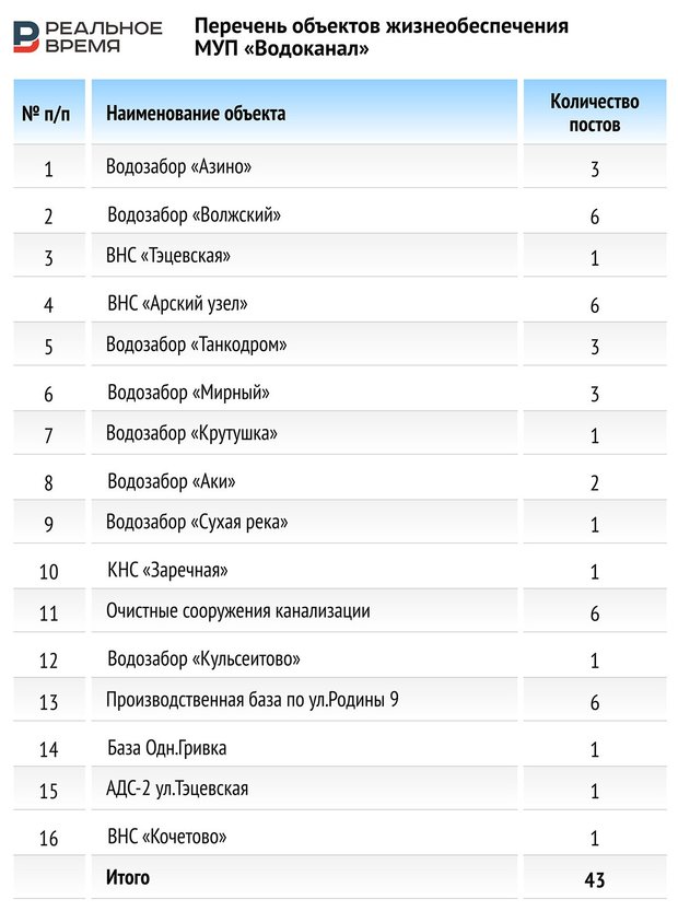 Казанское муниципальное предприятие «Водоканал» продолжает делать дорогостоящие закупки — как выяснило «Реальное время», муниципальное предприятие из собственных средств впервые потратит 103 с лишним миллиона рублей на годовую охрану своих объектов. Среди требований к частной организации — стаж не менее пяти лет и наличие мобильной группы, вооруженной спецсредствами для быстрого реагирования в случае осложнения обстановки. Подробнее — в материале «Реального времени».