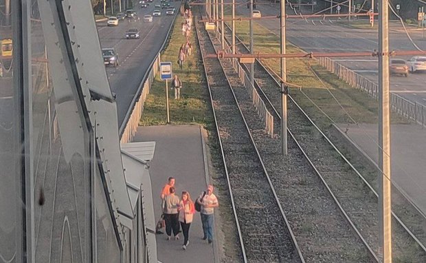 Как отмечают очевидцы, пассажиры выходят из транспорта и пешком добираются вдоль рельс до ближайшей остановки.