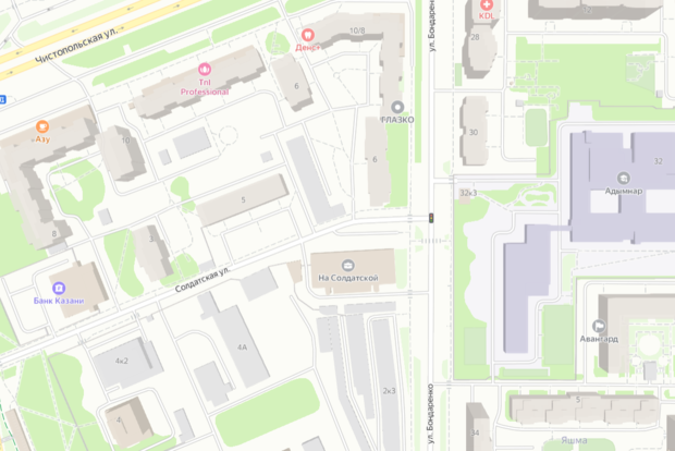 В столице Татарстана частично ограничили передвижение автомобилей по улице Чистопольской. С 23 июня по 15 августа по ул. Чистопольской в районе домов №4 и №10/8, а также в районе дома №6 по ул. Бондаренко и здания №8 по ул. Солдатской полностью закрыли местный проезд и тротуар.