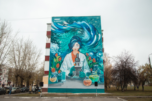 Симбиоз природы, промышленности, молодости, науки, экологичности — в Нижнекамске открыли два новых мурала. На торжественной церемонии открытия арт-объектов наградили автора эскиза и городских художников, которые приняли участие в конкурсе. Кстати, победителем работы, которая теперь украшает городской фасад по адресу проспект Химиков, 82а, стала художник-любитель из Нижнекамска Татьяна Леонтьева. Красочное изображение девушки-лаборантки с микроскопом в руках вдохнуло новую жизнь в облик микрорайона и стало местом притяжения горожан.