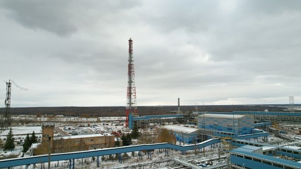 Завершен монтаж факельной системы. Высота факельного ствола составляет 150 метров, что сравнимо с 50-этажным небоскребом. Работа факельной системы в сочетании с другими заложенными в проект ЭП-600 технологическими решениями позволит выйти на минимальные показатели экологического воздействия.
