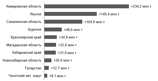 Второе место с большим отрывом, в 5,6 раза, заняла Якутия — 719,8 млн тонн. Тройку замыкает Красноярский край с 589,1 млн тонн отходов. В этих регионах, а также в большинстве из топ-10, развита добыча полезных ископаемых. Десятка выглядит так: