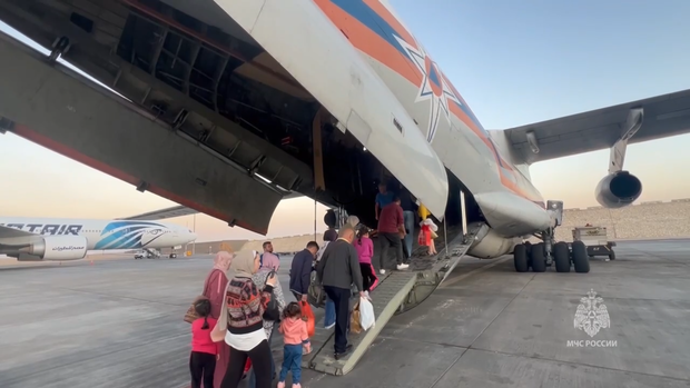 Самолет Ил-76 доставит 120 граждан России и членов их семей, которых эвакуировали из зоны палестино-израильского конфликта. Как сообщили в МЧС, спецборт уже вылетел из Каира в Москву.