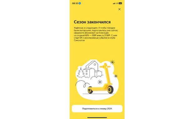 Так, например, работу приостановил кикшеринг «Яндекса». При включении приложения появляется сообщение, что «сезон закончился».