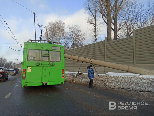 На крышу казанского троллейбуса упал столб