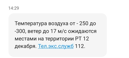 Татарстанцам объяснили причину рассылки сообщений о температуре до -300 градусов