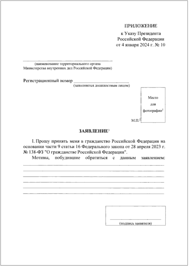 Кроме этого, согласно указу, подать заявление о приеме в российское гражданство также смогут иностранцы, уволенные в период СВО с военной службы в ВС РФ по состоянию здоровья; по достижении ими предельного возраста; по истечении срока контракта, а также в связи с прекращением действия военного положения.