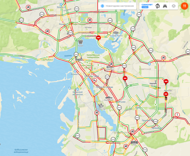По версии 2ГИС, пробки в Казани достигли 11 баллов.