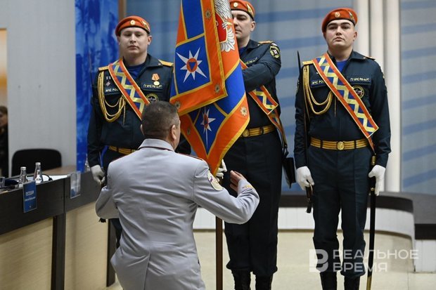 В Татарстане состоялась церемония прощания со Знаменем Главного управления МЧС России по республике генерал-лейтенанта внутренней службы Рафиса Хабибуллина, сообщает корреспондент «Реального времени» с коллегии ведомства.