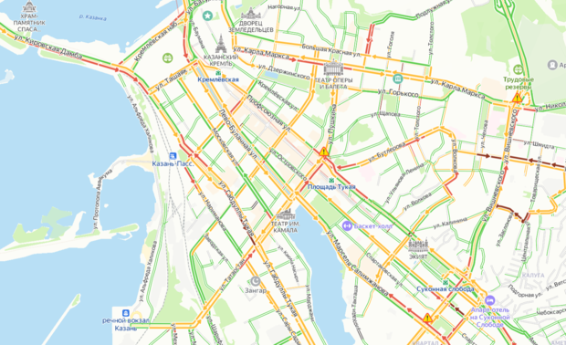 Движение в центре города тоже значительно затруднено. Сложная дорожная ситуация сложилась на ул. Габдуллы Тукая, Пушкина, Бутлерова и на Кировской дамбе.