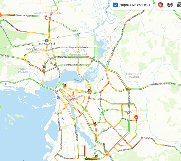 Вечером в среду, 7 февраля, на дорогах Казани образовались серьезные пробки. По состоянию на 18.00 они достигли 9 баллов, свидетельствуют данные сервиса «Яндекс.Карты».
