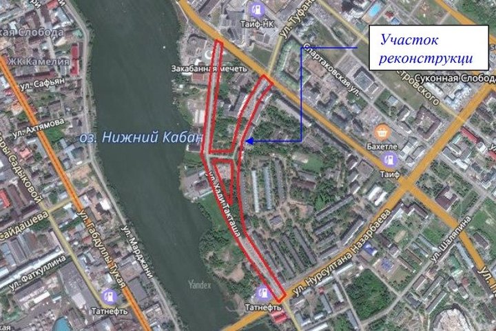В ходе первого из них будет затронута водная гладь озера, а также административный офис, расположенный на улице Хади Такташа, 78. Итогом работ должны стать два участка — 10,6 тысячи и 21,5 тысячи «квадратов». Второй этап подразумевает перевод в муниципальную собственность двух частных домов по адресу: Хади Такташа, 84, а также территории очистных сооружений. Таким образом будут образованы еще два участка — в 28,2 тысячи и 2 тысячи кв. метров. Завершающим этапом станет участок в 31,5 тысячи кв. м, образованный из автозаправочной станции «Татнефть», автомойки и ремонтного бокса «Мойка 24», а также кафе-бара «Татмак».
