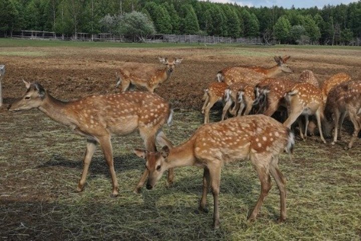 В 49 км от Рыбной Слободы есть ферма, где разводят алтайских маралов и пятнистых оленей. Животные ходят по огромным огороженным загонам, совсем не боятся людей и с радостью идут на контакт.