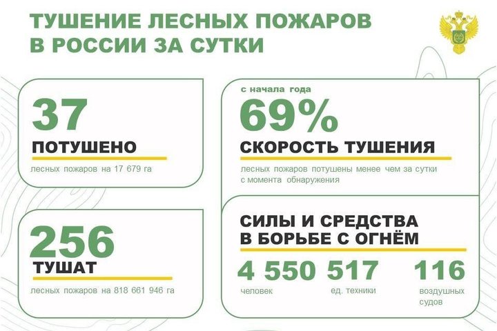Борьбу с огнем ведут 4 550 человек, 517 единиц спецтехники и 116 воздушных судов. Федеральный режим ЧС введен в Забайкальском крае и Республике Саха (Якутия).