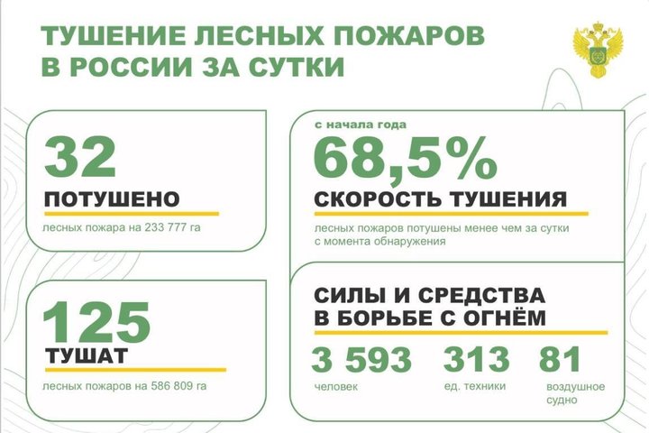 Двумя днями ранее российские пожарные ликвидировали 29 пожаров в 12 регионах страны.