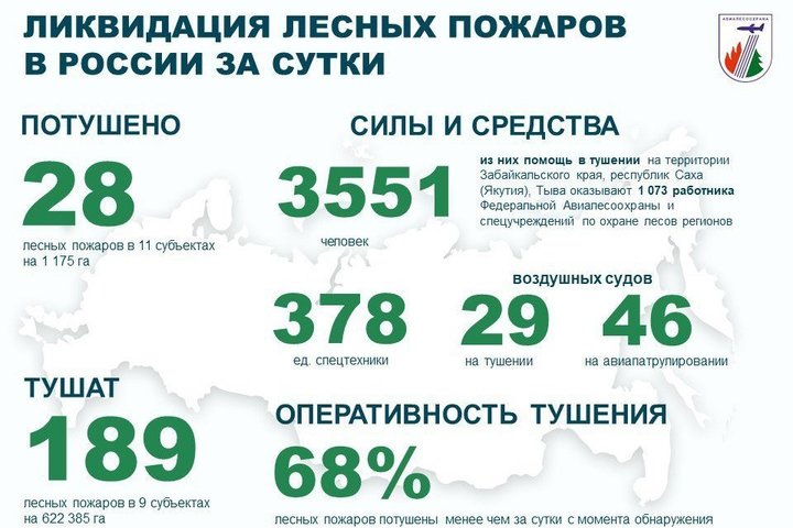 В ликвидации пожаров задействованы 3 551 человек, 378 единиц техники и 29 воздушных судов. Кроме того, за ситуацией наблюдают 46 воздушных судов, которые проводят авиационный мониторинг.