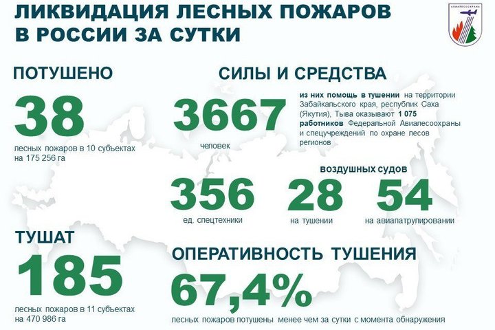 Однако на данный момент продолжаются работы по тушению 185 возгораний в 11 регионах страны — в борьбе со стихией задействованы 3 667 человек, 356 единиц техники и 28 воздушных судов.