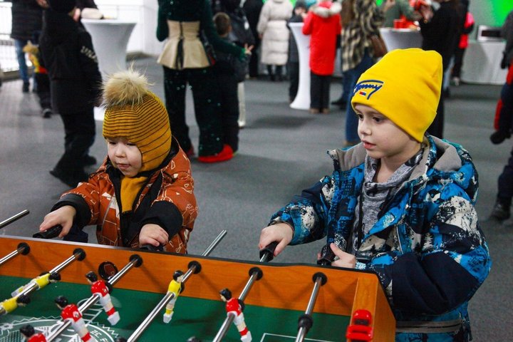 Скучать не пришлось и тем, кто пришел на праздник без коньков. На втором этаже для гостей были организованы игровые площадки. Дети играли в настольный футбол, аэрохоккей, крестики нолики, собирали башню, проявляли творческие способности в рисовании и преодолевали препятствия в «Бродилке». Здесь же можно было угоститься свежей выпечкой и горячими напитками.