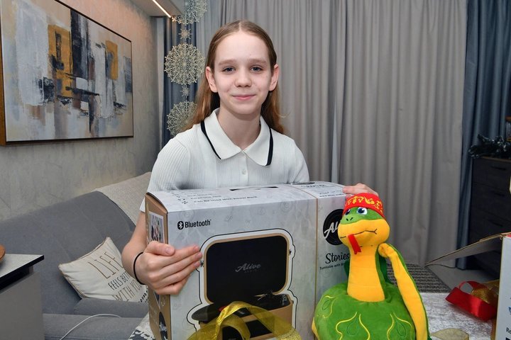 13-летняя Мирослава Якушевич мечтала о подарке-сюрпризе, которым стало многофункциональное устройство-принтер. 16-летней Полине Якушевич Шаймиев подарил виниловый проигрыватель, о котором она давно мечтала. Помощник Госсоветника Евгений Гришин вручил подарки девочкам, чей отец является участником СВО.