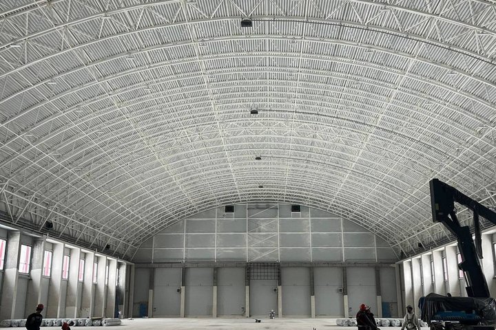 Сейчас в здании завершается монтаж инженерных сетей, установка наружного освещения, устройство канализации, электричества. Ведется отделка потолков и стен, благоустраивается территория.