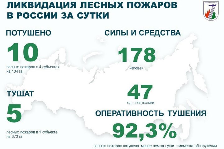 За прошедшие сутки на территории России потушено 10 лесных пожаров, в Московской области, Красноярском, Приморском и Забайкальском краях, сообщает пресс-служба ФБУ «Авиалесоохраны».