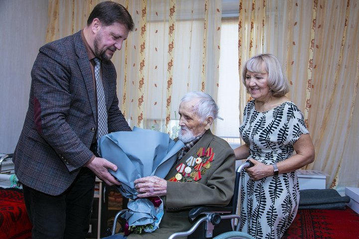 — С праздником, Панфил Григорьевич! Разрешите от лица генерального директора компании «ТАИФ-НК» Максима Новикова и от всего нашего большого коллектива поздравить вас с таким великим праздником — 80-летием Великой Победы. Хотим выразить вам огромную благодарность за ваш подвиг, за эти мирные 80 лет, в которых мы живем. Желаем вам крепкого здоровья, счастья, семейного благополучия и мирного солнечного неба. С Днем Победы! — поздравил помощник генерального директора по общим вопросам АО «ТАИФ-НК» Владимир Гатунок.