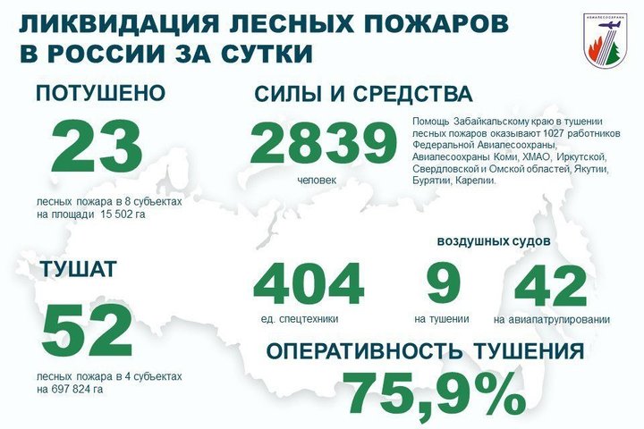 — Помощь Забайкальскому краю в тушении лесных пожаров оказывают 1027 работников федеральной Авиалесоохраны и подведомственных служб Коми, ХМАО, Иркутской области, Якутии, Бурятии, — добавили в пресс-службе Авиалесоохраны.
