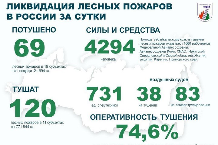 Особое внимание уделяется Забайкальскому краю, где помощь в тушении оказывают 1 060 работников Федеральной Авиалесоохраны, а также специалисты из Коми, ХМАО, Иркутской, Свердловской и Омской областей, Якутии, Бурятии, Карелии и Приморского края.