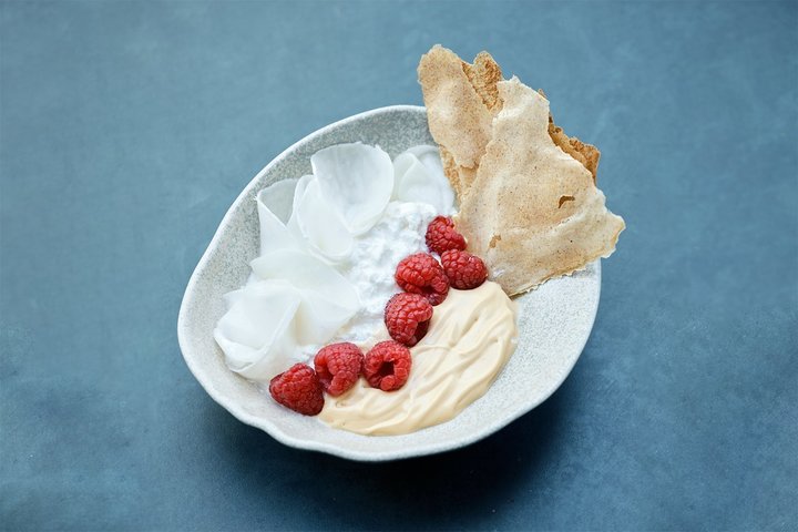 — Это и есть предыстория моего десерта: здесь мусс на основе ряженки и сметаны, в роли печенья выступает овсяный чипс, все сопровождается малиной и маринованной кольраби с кокосом. Получается много сладости, свежести, да еще и хруст! — улыбался Игорь.