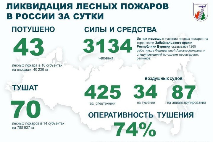 В целях стабилизации ситуации в Забайкальском крае и Бурятии направлены дополнительные силы — 1 265 работников Федеральной Авиалесоохраны и специализированных учреждений по охране лесов из других регионов.