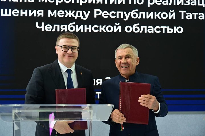 Главы Татарстана и Челябинской области — Рустам Минниханов и Алексей Текслер — подписали план мероприятий по реализации ранее заключенного Соглашения о сотрудничестве между двумя регионами.