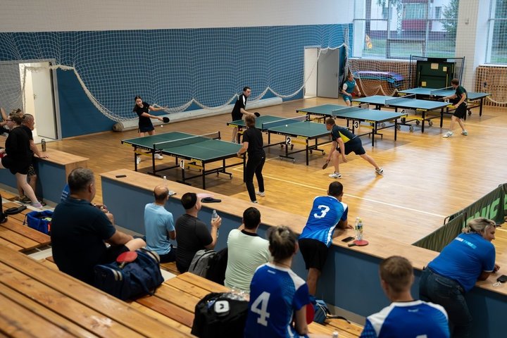 В спортивном зале ФОК «Факел» состоялись соревнования по настольному теннису среди предприятий и организаций города Нижнекамска. В первой лиге, куда вошли коллективы численностью свыше 500 человек, участвовали пять команд, во второй — четыре. Состав команд включал двух мужчин и женщину. Каждая игра шла до двух побед, счет в партиях — до 11 очков.