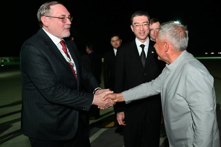 В аэропорту города Туркменбаши Рустама Минниханова встретили высокопоставленные лица из правительства Туркменистана и посол России
