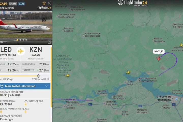 Также в небе над Чебоксарами находится самолет компании «Северный ветер», пассажиры которого летят из Санкт-Петербурга в Казань.