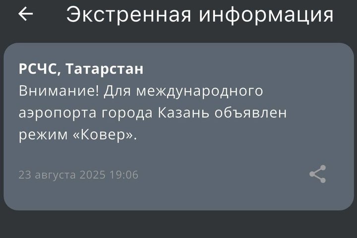 Также по данным МЧС России в международном аэропорту столицы Татарстана объявлен план «Ковер»