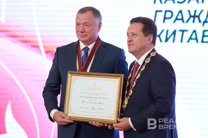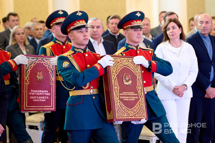 В здании Казанской ратуши прошла церемония присвоения звания «Почетный гражданин Казани», а также «Предприятие и гражданин, внесенные в Книгу почета Казани». Среди награждаемых — зампредседателя правительства России, уроженец Казани, бывший министр строительства Татарстана Марат Хуснуллин, глава Госкорпорации «Ростех» Сергей Чемезов, а также депутат Государственной думы РФ Ирек Богуславский.
