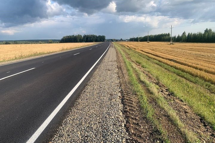 На участке провели фрезерование асфальта, уложили выравнивающий и верхний слои асфальтобетона, укрепили обочины, нанесли дорожную разметку.