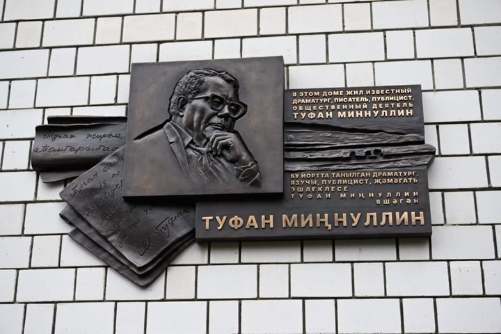 Сегодня в Казани состоялась церемония открытия мемориальной доски в честь известного татарского драматурга, заслуженного деятеля искусств РСФСР и народного писателя Татарстана Туфана Миннуллина. Доска появилась на фасаде дома №16а по улице Толстого, где жил писатель. Об этом глава региона написал в своем телеграм-канале.