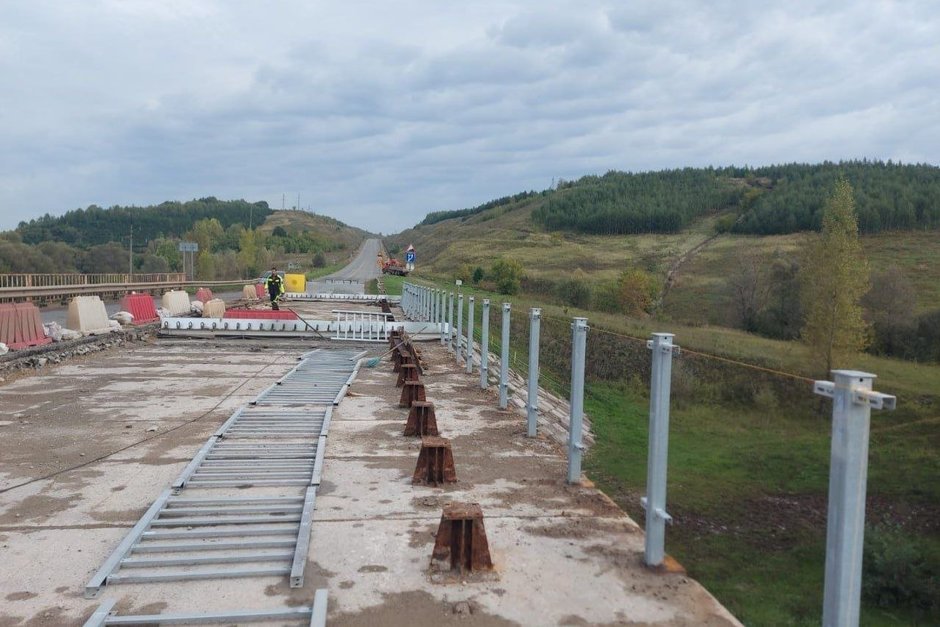 В настоящее время дорожники выполнили работы по фрезерованию существующего асфальтобетонного покрытия. Завершаются работы по ремонту моста, расположенного на этом участке дороги, и устройству продольной дренажной системы.