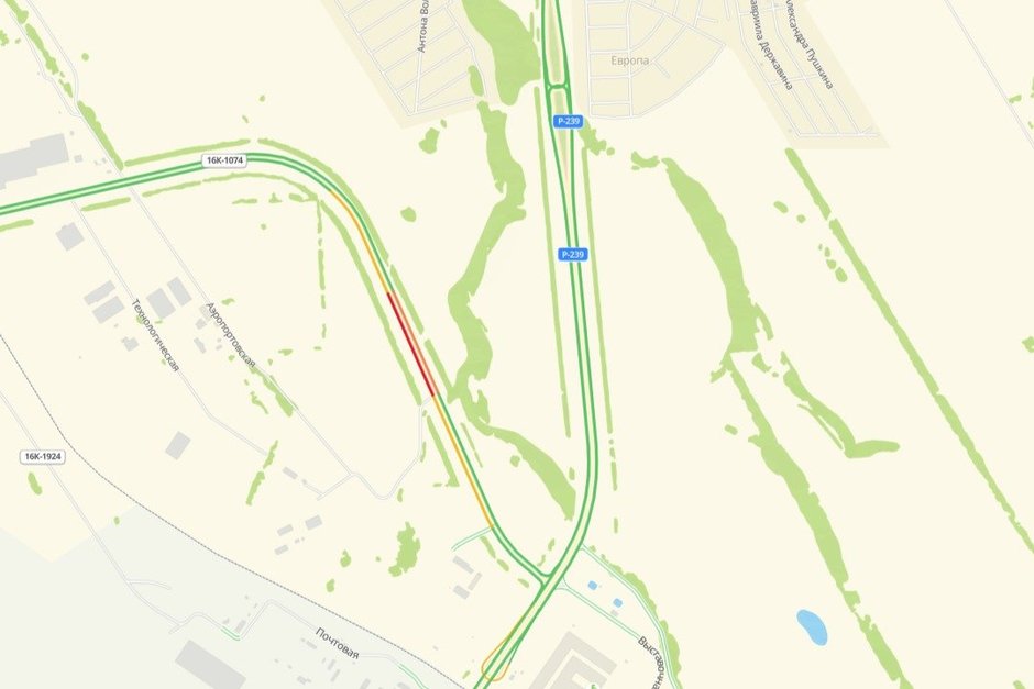Пробка образовалась на выезде из Kazan Expo в направлении Столбища и, по данным сервиса 2ГИС, составляет около 1,5 км.