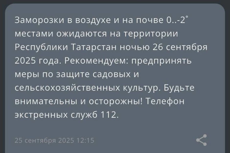 Ранее в МЧС сообщили о предстоящих заморозках в Татарстане