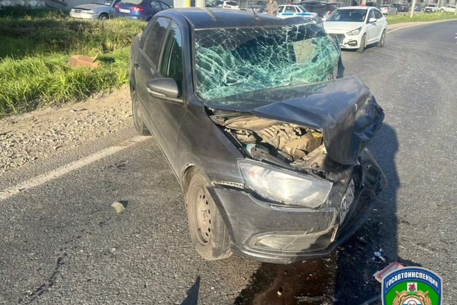 В результате ДТП водитель Renault Sandero вылетел через переднее боковое стекло правой двери, женщина на Lada Granta получила открытый перелом ноги, а ее пассажир доставлен в больницу.