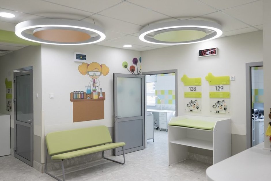 Известно, что на первом этаже размещены кабинеты неотложной помощи, травматолога и инфекциониста. Второй этаж отведен под лечебно-диагностический блок с кабинетами узких специалистов. Здесь будут принимать офтальмолог, детский гинеколог, уролог, невролог, психиатр, кардиолог, хирург, эндокринолог, отоларинголог и стоматолог.