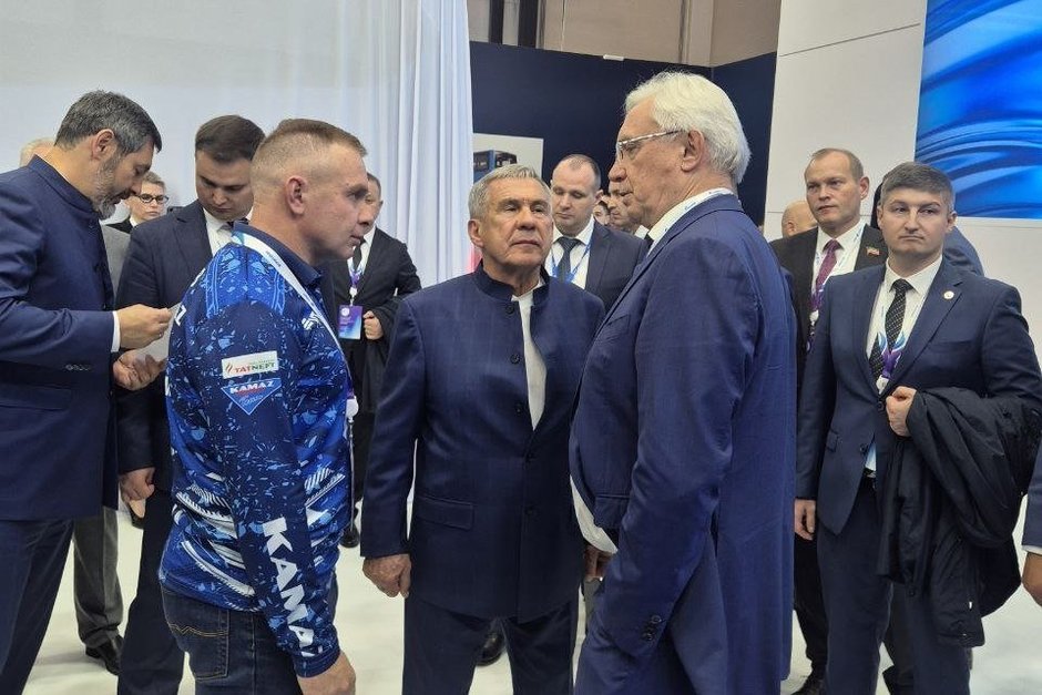 Оба посетили экспозицию ПАО «КАМАЗ», где их сопровождал гендиректор предприятия Сергей Когогин