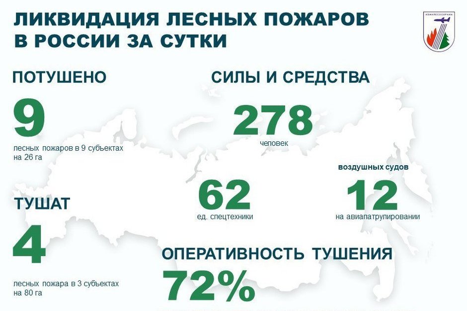 В ликвидации пожаров принимают участие 278 человек и 62 единицы техники. Для авиационного мониторинга лесопожарной обстановки задействовано 12 воздушных судов.